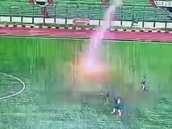 על פי סרטון ברשתות החברתיות, נראה אותו שחקן מחכה למסירה מאחד מחבריו ופתאום הגיע הברק והשאיר את יתר השחקנים המומים על הדשא במהלך משחק ידידות בין שובאנג לבנדונג במערב ג'אבה.