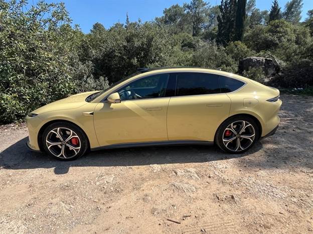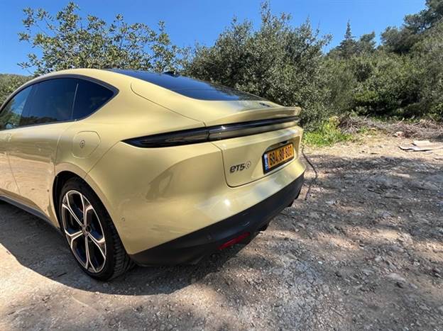 אי אפשר שלא להתרשם מהעיצוב החיצוני של ה-eT5. הצללית היא הכלאה מוצלחת בין האצ'בק לסדאן שאליה מתווספים אינספור "דיטיילים" ייחודיים. בחזית אלה יחידות תאורה מאורכות ודקיקות שיחד עם פתחי יניקה גדולים ובולטים, יוצרים 'פרצוף' זוויתי ואגרסיבי שמזכיר כמה מכוניות סופרטיביות. ההשקעה העיצובית לא נגמרת שם - החלון הקדמי והאחורי מחוברים בגג זכוכית שחור שיוצר אפקט דו-גווני נאה. גם הישבן מספק את מנת הדרמה שלו עם פנסים דקיקים שנמתחים לרוחב המכונית, במה שהזכיר קצת לח"מ את השפה העיצובית של אסטון מרטין. אפשר להתווכח אם מדובר בפלגיאט עיצובי או מקריות, אבל התוצאה הכוללת מרשימה ונהנית ממקדם בולטות חריג מאוד ביחס לסדאנים. בכל העיצוב הזה יש רק אלמנט חורק אחד: על הקווים הנקיים של הגג מפוזרות ארבע בליטות כעורות - שלוש מעל החלון הקדמי בחזית ואחת מאחור. מתברר שכשיש על המכונית עשרות חיישנים ומצלמות, המקומות המסורתיים שבהם הם בדרך כלל מוחבאים מתמלאים וצריך לאלתר (למרות היתרון בהגדלת "שדה הראייה" של המצלמה). ואם כבר הגענו לחלונות אז מבנה החלון האחורי משאיר רק חרך להתבוננות והרוורסים יעבדו בעיקר דרך המצלמות, ובעייתי מזה - לגג הזכוכית הענק אין וילון פנימי, עניין שיכול להתברר כבעייתי בשמש הישראלית.