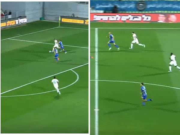מכבי חיפה, לעומת זאת, מתבססת יותר על התקפות מעבר תחת מסאיי דגו מה שהיה אפקטיבי לאורך חלק גדול של העונה תודות לחלאיילי. יש לו כוח מתפרץ ואתלטיות יוצאי דופן והיכולות שלו באות לרוב דווקא ללא הכדור, אז הוא יכול להקדים את השחקן שלו בספרינט, לנוע לשטח פנוי באגף הימני ומשם, כשיש לו מספיק זמן פנוי לייצר מסירה טובה או לאיים על השער. דוגמה טובה לכך אפשר לראות במשחק החוץ נגד בני ריינה. שימו לב שלוקחות לו כארבע שניות מהרגע בו מתחיל את הספרינט קרוב למרכז המגרש עד שהוא מקבל את הכדור ברחבה.