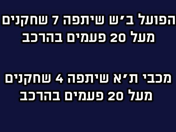 ברשימת 26 הכובשים המובילים של ליגת העל, ישנם די במפתיע רק שני נציגים למוליכת הטבלה מבאר שבע: קינגס קאנגווה ואלון תורגמן, לצד שני נציגים של להפועל ירושלים, שלושה של למכבי ת"א, חמישה של מכבי חיפה (כולל גיא מלמד) ושישה של לבית"ר ירושלים.