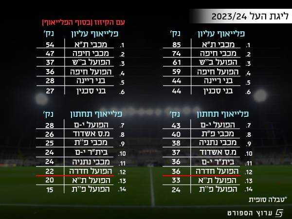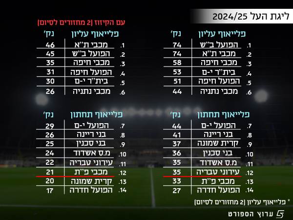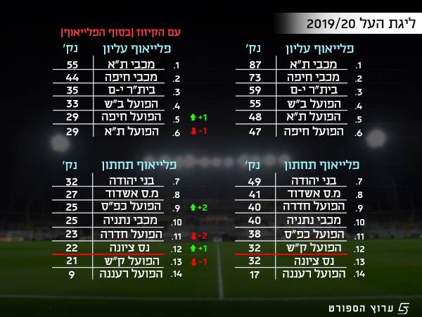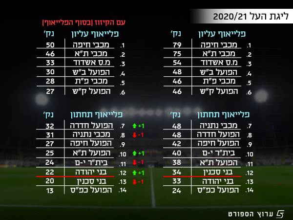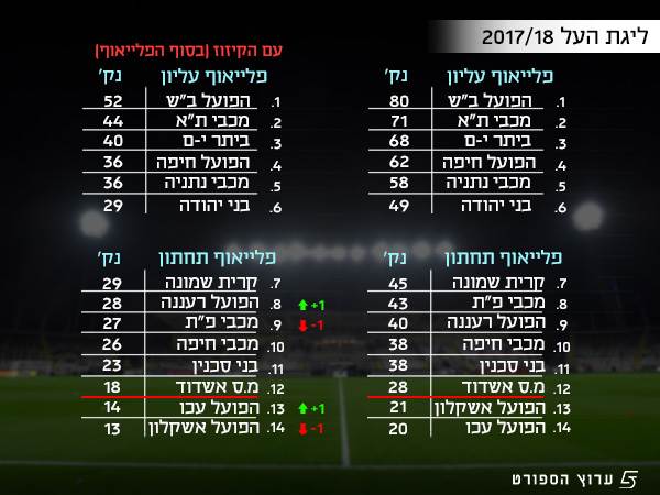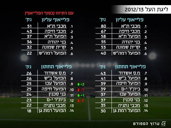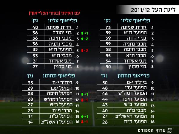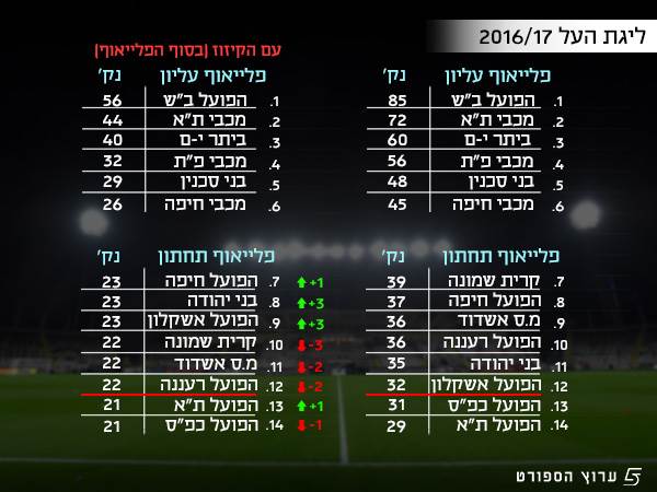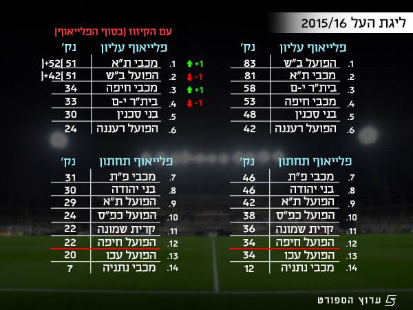 עם מהפך בפסגה: טבלת הליגה עם שיטת הקיזוז