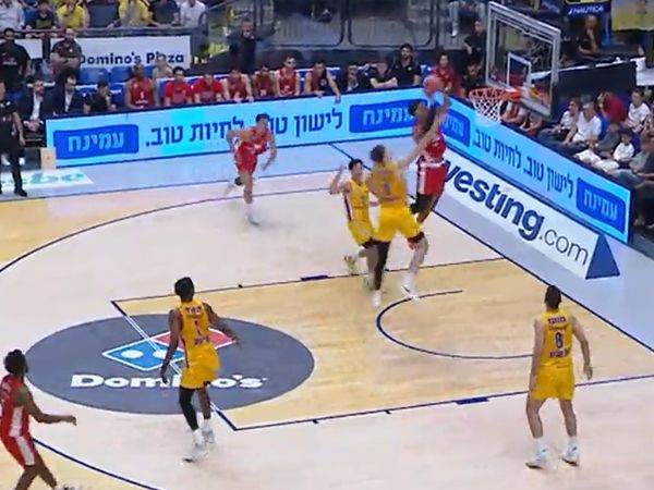 בשמיים. מכבי ת"א והפועל ירושלים פתחו היום (שני) את סדרת גמר ליגת העל בכדורסל, כשאחד המהלכים הבולטים ביותר ברבע הראשון היה דאנק גדול של ג'סטין סמית'.