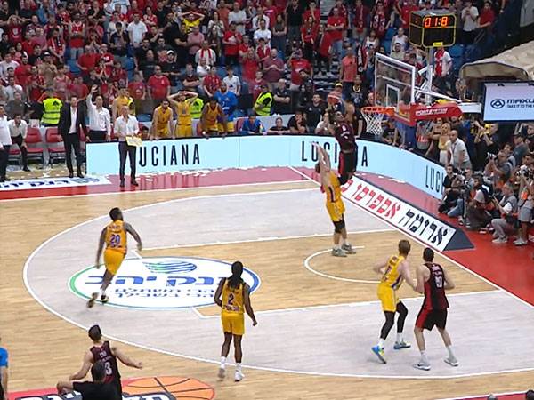 מכבי ת"א כבר הייתה בדרך לחגיגות אליפות אחרי סל ניצחון פוטנציאלי של רוקאס יוקובאיטיס 1.8 שניות לסיום, שהעניק יתרון שתי נקודות. הפועל ירושלים הלכה לפסק זמן, כשהיה נראה שהם ילכו על מהלך של הכל או כלום עם ניסיון של שלשה שתנצח את המשחק.