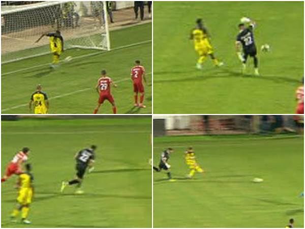 מה שקרה בדקות הסיום של המשחק בין בני סכנין לבית"ר ירושלים הוא לא משהו שרואים בכל יום. סכנין שהפסידה 2:1 ניסתה להניע את הכדור קדימה באופן אגרסיבי, כשהשוער מוחמד אבו ניל הרים כדור ממחצית המגרש של בית"ר. מיגל סילבה יצא בצורה רעה, אך בריאן קראבלי הרחיק מקו השער בדקה ה-95.