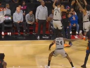 טאונס לא נרתע מהעזרה הכפולה של הספרס ומהלחץ של ויקטור וומבניאמה עליו - והצליח לשלוח מסירה יפהפייה ומהירה מסביב לצרפתי - שחלפה על פני דווין ואסל ונחתה היישר בידיו של או ג'י אננובי, שרק היה צריך להניח דאנק קל.