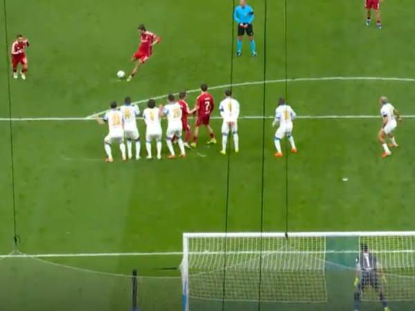 סובוסלאי ניגש לבעוט את הכדור החופשי שקיבלו האדומים והוא כבש שער דומה לזה שכבש רונאלדיניו בעברו, לאחר שבעט את הכדור מתחת לחומה של המארחים.