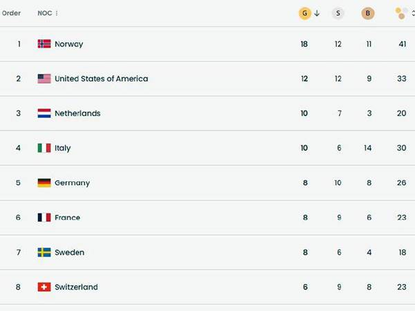 נפרדים ממילאנו-קורטינה. אולימפיאדת החורף 2026 הגיעה היום (ראשון) לסיומה עם כל הגמרים האחרונים של יום הסיום, כאשר טקס הסיום יתקיים הערב ב-21:30 שעון ישראל. כעת, אחרי שכל המשחקים מאחורינו, אפשר להעיף מבט על טבלת המדליות הסופית.באופן צפוי, כפי שקרה במהדורות האחרונות של משחקי החורף האולימפיים, נורווגיה שולטת. מעצמת ספורט החורף מצפון אירופה הגיעה למקום הראשון בטבלה בפעם הרביעית ברציפות, עם שיא כל הזמנים באולימפיאדות חורף של 18 מדליות זהב. היא הוסיפה לכך 12 מדליות כסף ו-11 ארד.ארה"ב סיימה במקום השני, עם 12, 12 ו-9, כאשר הזכייה בזהב בהוקי קרח באירוע האחרון של המשחקים הייתה מתוקה ביותר. הולנד במקום השלישי עם 20 מדליות סה"כ, כשכולן נרשמו בשני ענפי ההחלקה המהירה. המארחת איטליה רביעית, למרות שהיו לה יותר מדליות סה"כ מהולנד, אך שתיהן היו בשוויון במדליות הזהב (10) ומדליית כסף אחת יותר לטובת הולנד (7 לעומת 6) עשתה את ההבדל.בעקבות ההפסד בגמר ההוקי, קנדה נותרה מחוץ לעשירייה, כמו גם סין ודרום קוריאה. מדינות רבות ממדינות קרות בצפון אירופה שנחשבות לפחות חזקות בספורט חורף נותרו בתחתית הטבלה עם מעט מדליות, אם בכלל, דוגמת דנמרק, פינלנד, לטביה ואסטוניה.