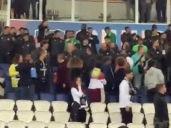 פ.ס.ז' הנחתה את אוהדיה שלא לערב פוליטיקה וספורט, אבל להם היו תכניות אחרות. במהלך המשחק הונפו עשרות דגלי פלסטין וכן שלטים למען תושבי עזה. בסוף המשחק האולטראס של פ.ס.ז' החל להתגרות באוהדי מכבי חיפה, הניף דגלי פלסטין ואף השליך חפצים אל עבר היציע שאיכלס את שחקני קבוצת הנוער של מכבי חיפה.
