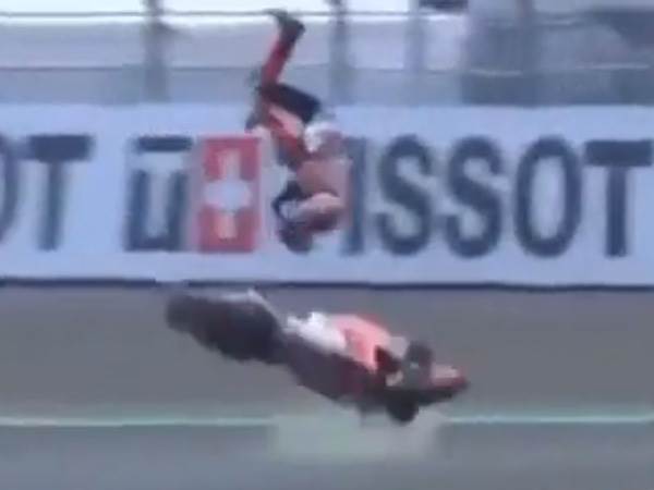 הספרדי (29), החליק עם אופנועו כתוצאה מתנאי מזג האוויר הבעייתיים על המסלול, כשכתוצאה מכך התעופף באוויר והתגלגל על הקרקע לאורך עשרות מטרים. האופנוע עליו רכב, כצפוי, ספג מכות לא פשוטות מההתרסקות.