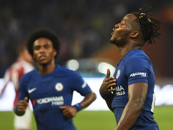 אלופת אנגליה הגיעה לשלושה-ארבעה מצבים טובים במחצית הראשונה אבל לא הצליחה להכניע את דויד אוספינה. עד שבדקה ה-40 וויליאן קיבל כדור בצד שמאל ובבעיטה חכמה פגש את הקורה ומשם הכדור עשה את הדרך לרשת. 0:1 לבלוז. שתי דקות מאוחר יותר, אנגולו קאנטה מסר לעומק לעברו של מיטשי בטשואי. החלוץ הבלגי עצר את הכדור ובעט מ-18 מטרים מדויק, כדי להכניע את אוספינה. 0:2 לצ'לסי בירידה להפסקה.