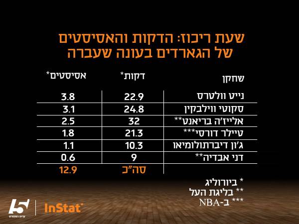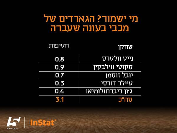 לצורך ההשוואה, הכללנו שחקנים ששיחקו ברמת יורוליג ומעלה, ולכן אלייז'ה בריאנט לא נכלל בטבלה (כמו גם דני אבדיה שכמעט ולא שיחק ביורוליג). ונכון, בבקשה שוב אל תתנפלו - ברור שחטיפות הן רק פרמטר אחד ולא תמיד הכי חשוב בהגנה, אבל גם כאן, אפשר לקבל אינדיקציה, שמראה לנו שבכל הנוגע להגנה של הקו האחורי, מכבי ת"א עלולה להיות בצרות.