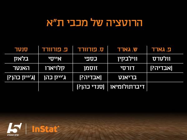 כדי לבחון בצורה ויזואלית וטובה יותר את הסגל של מכבי בעונה הבאה, בואו נבחן את הרוטציה המוערכת על פי עמדות: