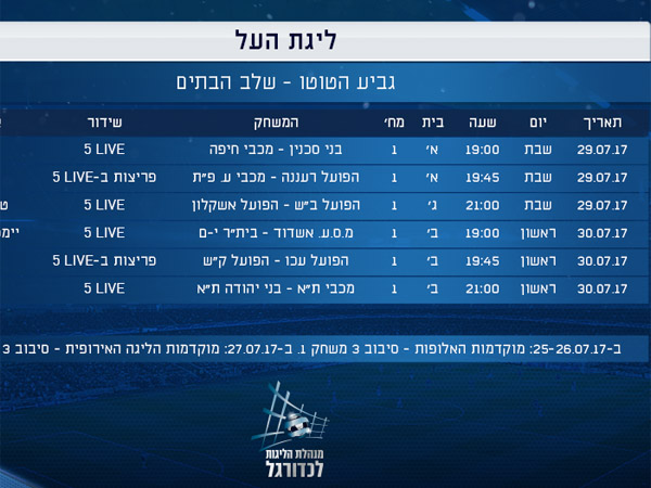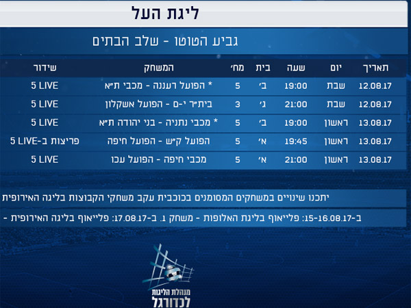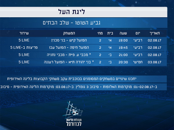 לאחר שהתקיימו ההגרלות לקראת העונה הקרובה, עונת 17/18, פורסמו היום (חמישי) המועדים של משחקי חמשת המחזורים הראשונים בגביע הטוטו של ליגת העל והליגה הלאומית. כמו כן, פורסם כי משחק אלוף האלופים בין הפועל ב"ש לבני יהודה, ייערך ב-10 באוגוסט בשעה 20:45.