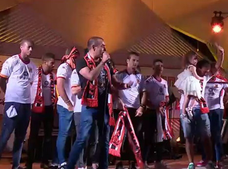 האוהדים חיכו בשקיקה שהשחקנים יעלו על הבמה, עליה הונף הגביע. לאחר שעלו השחקנים, האוהדים שרו ליונתן כהן "תישאר" והרעיפו אהבה במיוחד לפדרו גלבאן. ראש העיר נשא דברים לקול שריקות בוז צורמות מהקהל הכתום, ולאחר ההנפה של הגביע נראו זיקוקים בשמיים.