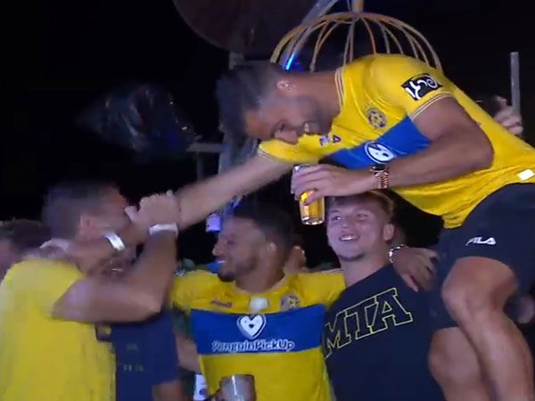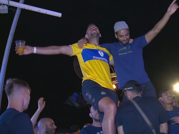 שמחה גדולה הלילה. מכבי תל אביב זכתה אמש (רביעי) בגביע המדינה וכמיטב המסורת, החגיגות נמשכו אל תוך השעות הקטנות של הלילה. שחקני הקבוצה התייצבו באחד המועדונים בעיר, שם נכחו גם אוהדים, וחגגו את התואר עם שירים וריקודים. צפו בקטע מהחגיגות בנגן למעלה>>