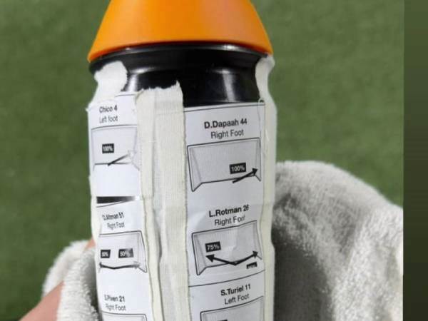 מכבי תל אביב העפילה לרבע גמר גביע המדינה, אחרי 1:1 ו-4:5 הכי דרמטי שיכול להיות על הפועל תל אביב. הצהובים היו מרחק פנדל אחד מהדחה והפסד ראשון בדרבי אחרי 12 שנים, אבל הדיפת ענק של אופק מליקה איפשרה לאלופה לחזור לדו קרב ואף לנצח אותו.היום (שישי), מאמן השוערים של מכבי תל אביב, דרגאן באיץ`, פרסם רצף סטורים ובו חשף את ההכנות של מליקה לדו קרב הפנדלים. תחילה ניתן לראות קטע משידור המשחק, בו רואים את באיץ` מדריך את מליקה לפני הפנדלים, כשלאחר מכן הוא פרסם תמונה של הפתק שהדביק מליקה על הבקבוק שלו.בפתק הזה, שהוכן מראש כמובן, ניתן לראות את סיכויי הבעיטות של שחקני הפועל השונים, שחלקם כלל לא היו חלק מדו קרב הפנדלים, ביניהם דניאל דאפה, סתיו טוריאל, עומרי אלטמן ושחר פיבן. אך בפתק הזה היה גם שם נוסף, שהכריע את כל הערב - שמו של לירן רוטמן.כפי שניתן לראות בפתק למטה, הצוות של מכבי תל אביב נתן סיכוי של 75% שרוטמן יבעט לצד שמאל וגבוה - בדיוק הכיוון אליו בעט שחקנה של הפועל תל אביב, ובדיוק המקום אליו זינק מליקה, בהדפה שבסופו של דבר הביאה את המשחק. עוד זווית קטנה לערב המטורף שהיה לנו בגביע.