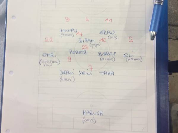 לפי הלוח, נראה שהרצוג תיכנן מוקדם מאוד את ההיעדרות של טאלב טוואטחה והציב את עמרי בן הרוש בעמדת המגן השמאלי, בעוד אוראל דגני הוצב בתור אחד משלושת הבלמים ואעיד חבשי נכתב כגיבוי. כמו שזה נראה, אופציות נוספות עליהן חשב הרצוג היו לפתוח עם רמי גרשון באגף השמאלי או אפילו עם שרן ייני. אופיר מרציאנו גם היה בתמונת ההרכב, אבל הוחלט לבחור באריאל הרוש והוא ממש לא איכזב.