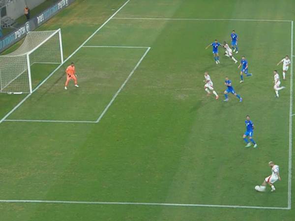 באופן לא ממש מפתיע, נבחרת ישראל נקלעה לפיגור מול איטליה והשער שנכבש היה די מיוחד. כדור רוחב של פדריקו דימרקו מצא את דוידה פראטזי שהבקיע בעזרת החזה שלו. למרות שהיה נראה שקשר אינטר נתפס בנבדל, בהילוך חוזר הוצבו הקווים והראו כי ההחלטה לאשר אותו הייתה נכונה. צפו בשער בווידאו שבראש הידיעה>>>