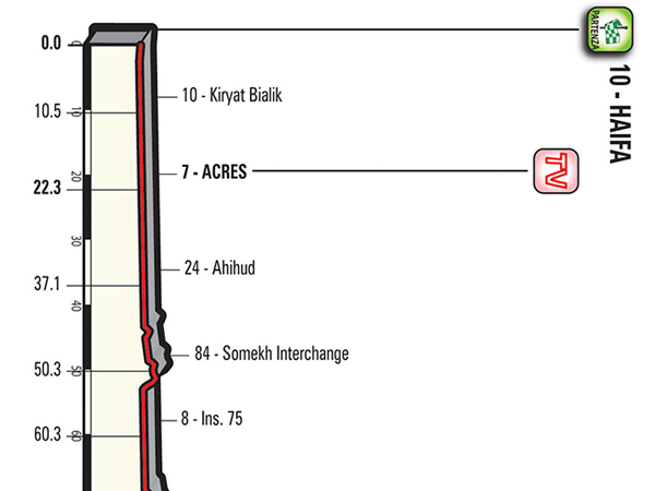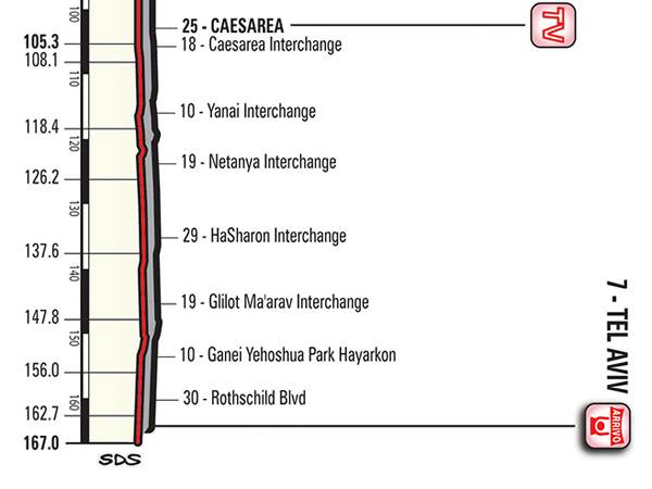 ההזקנה תהיה ממתחם אצטדיון סמי עופר בחיפה בשעה 13:50. הרוכבים יעלו צפונה לעכו ואז יחלו את הדרך דרומה לעבר תל אביב. בקילומטר ה-88 צפוי מאבק ראשון על ניקוד מלך ההרים בעליה המפורסמת של זכרון יעקב (2.6 ק"מ) בשיפוע שמגיע עד 13% במקסימום. שלושת הקילומטרים האחרונים בתל אביב (רחוב אבן גבירול, שדרות רוטשילד, רחוב הרצל, רחוב סלמה) כוללים לא מעט פניות של 90 מעלות, ואילו ספרינט הסיום אמור להגיע ב-600 המטרים האחרונים ברחוב קויפמן (גן צ'רלס קלור) .