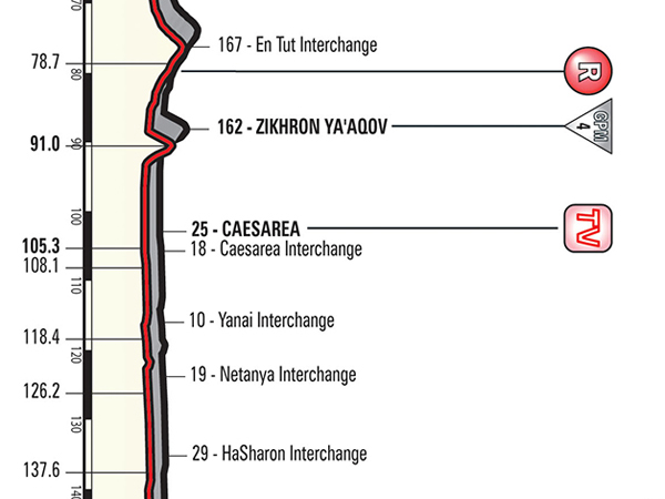 14:45-16:45 – כביש 4, מצומת זיכרון יעקב עד צומת אור עקיבא.