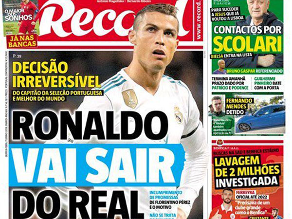 כמו כן, נראה שעזיבתו של זינדין זידאן מסדרת לריאל מדריד קיץ סוער ועמוס. ב"רקורד" הפורטוגלי מדווחים שכריסטיאנו רונאלדו יעזוב בוודאות, זאת אחרי שכבר פיזר ספקות לגבי עתידו לאחר גמר ליגת האלופות, אותם ניסה לטשטש בחגיגות הזכייה כשקרא לאוהדים: "נתראה בעונה הבאה". עם זאת, במולדתו טוענים שרונאלדו כבר קיבל את ההחלטה ולא יחזור בו.