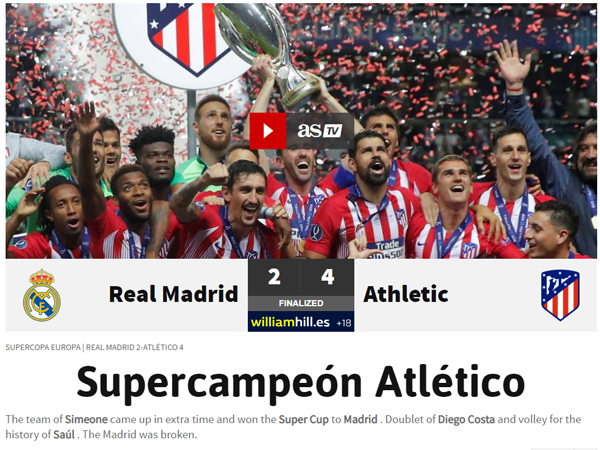 עוד נכתב על התצוגה של ריאל מדריד: "המשחק הזה הותיר הרבה ספקות לגבי הסיכויים של ריאל לשחזר את העונה שעברה, אבל בעיקר מעלה שאלה אחת - האם היא לא זקוקה לחלוץ כמו דייגו קוסטה? ריאל ספגה וספגה כמו שלא ספגה מעולם וההגנה שלה לא הייתה קיימת, אבל זו לא הבעיה היחידה. גם שחקן כמו קוסטה חסר לה".