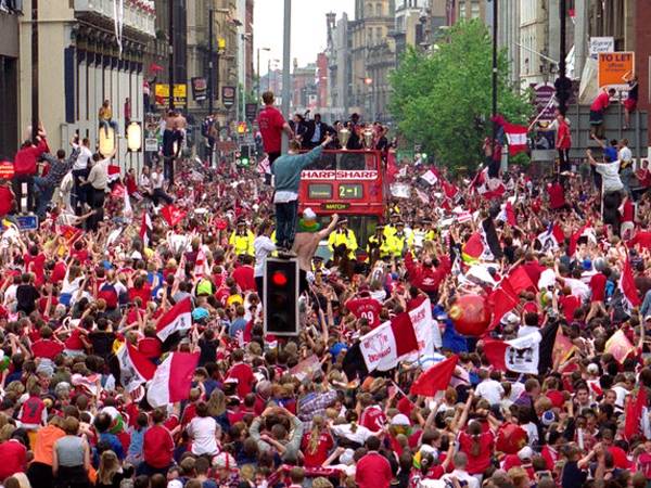 נחתנו באמצע הלילה לקור של לונדון עטופים בדגלים. אנשים הסתכלו עלינו כגיבורי על שחזרו מהמלחמה וניצחו את הרעים. גם אלה שלא אוהבי יונייטד או מבינים בכדורגל בירכו אותנו וכל אחד הרגיש כאילו הוא היה זה שנגח לעברו של סולשיאר.