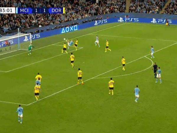 זה שער גדול גם מבחינת המהלך עצמו. חוליאן אלבארס מסר לרודרי, מאטס הומלס נגח והרחיק. הכדור הגיע לנתן אקה, הוא מצא את ז'ואאו קאנסלו ומספר 7 של מנצ'סטר סיטי הרים לרחבה. זה נראה כמו כדור בלתי אפשרי, אבל הולאנד הצליח לעבור בין המגנים, לקפוץ לגובה בלתי אפשרי ולהכניס, עם הרגל, את הכדור לרשת של האקסית.