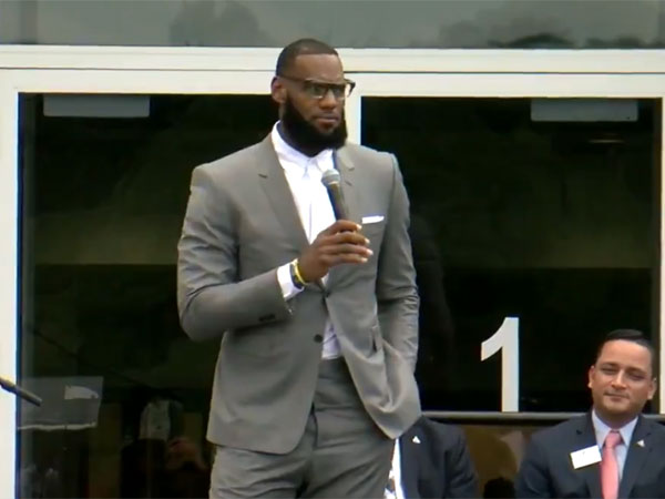 "זה רגע עצום, לא רק בחיי, לא רק בחיי משפחתי ולא רק עבור הקרן. אלא עבור הילדים וכל העיר של אקרון. אנחנו צריכים להריע לעצמנו. זה לא משנה אם אני משחק עבור הלייקרס או לא, אקרון, אוהיו, היא תמיד הבית עבורי. תמיד", סיכם ג'יימס.