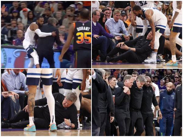 מינסוטה השלימה הבוקר (שני) סוויפ היסטורי על פיניקס בדרך לחצי גמר המערב, עם ניצחון 116:122 בחוץ בניצוחו של אדוורדס שהתפוצץ עם 31 נקודות, סיים עם 40, שלח את האליל שלו קווין דוראנט הביתה והראה לכל עולם הכדורסל שהעתיד כבר כאן.בדקות הסיום של המשחק, התקיים אירוע חריג במיוחד. מייק קונלי, רכזה של מינסוטה, נתקל במאמנו כריס פינץ`, שנפל על הקרקע ופונה לטיפול בחדרי ההלבשה כשהוא נעזר בעוזרי המאמן שלו ומתקשה ללכת לבד על רגליו. דקות לאחר המשחק, נודע שהחשש הגדול הוא שפינץ` קרע את גיד הפיקה בברך ועלול להחמיץ את המשחקים בסיבוב השני בפלייאוף. צפו באירוע בנגן הווידאו למעלה>>>Minnesota Timberwolves coach Chris Finch is feared to have a torn patellar tendon in his knee on late game collision during Game 4 win in Phoenix, sources say. Brutal.— Shams Charania (@ShamsCharania) April 29, 2024