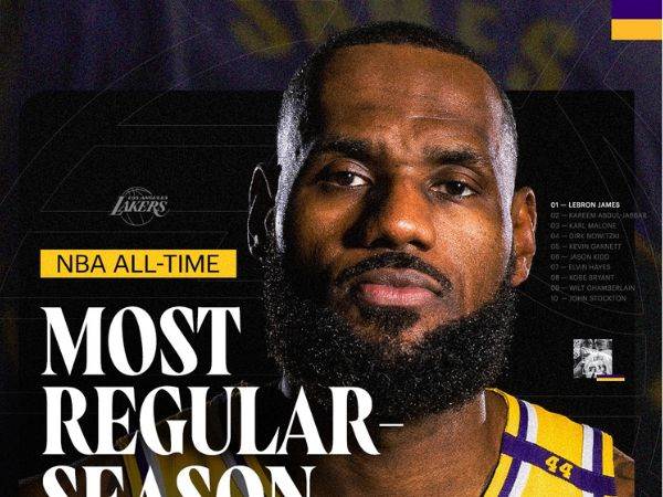 ממשיך לעשות היסטוריה. לברון ג'יימס, מלך הסלים של ה-NBA בכל הזמנים, הפך הלילה (בין חמישי לשישי) למלך הדקות של כל הזמנים עם 57,471 דקות בעונה הסדירה, מה שסייע לו לעקוף את כרים עבדול-ג'באר. השיא כמובן לא כולל את הפלייאוף, בו לברון הגיע ל-11,858 דקות.