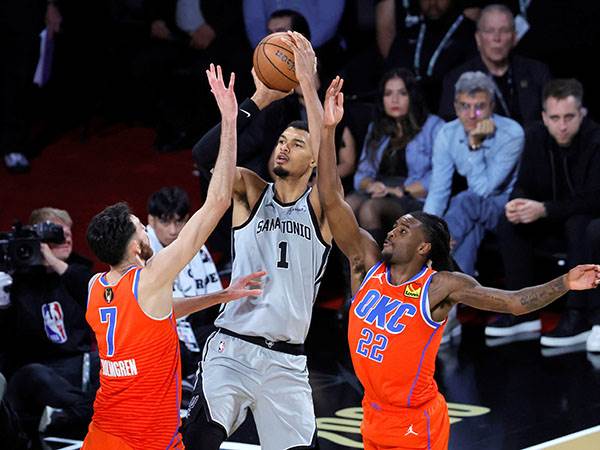 ויקטור וומבניאמה יוכל לזכות השבוע בתואר הראשון שלו ב-NBA, לאחר שסן אנטוניו גברה הבוקר (ראשון) 109:11 על אוקלהומה סיטי בדרך לגמר הגביע של ה-NBA מול הניו יורק ניקס. הכוכב הצרפתי היה צריך 21 דקות בלבד כדי לספק 22 נקודות ו-9 ריבאונדים בדרך לניצחון, וזכה לקריאות MVP מהקהל. "יש אנשים שבנויים לרגע הזה, ויש כאלה שלא. אנחנו בנויים לזה", אמר בסיום.