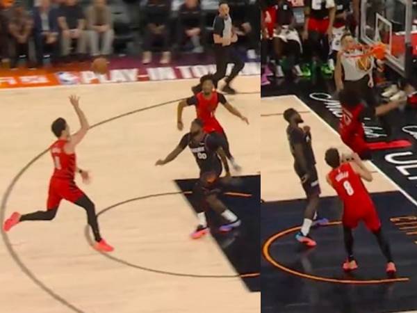 דני הרים את חברו שהתעופף להטבעה אדירה במהלך הריצה של פורטלנד בפיניקס
