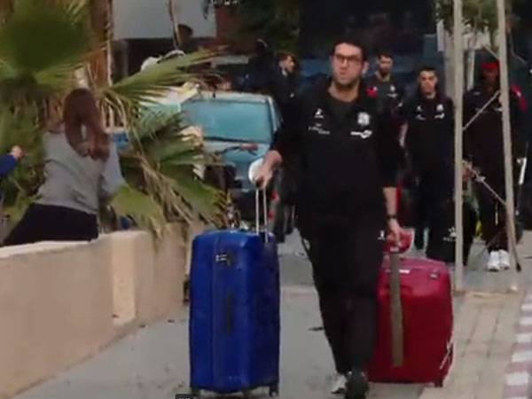 האוטובוס שהסיע את אנשי באסקוניה משדה התעופה לבית המלון - לא הצליח לחנות בקרבת דלת המלון ונאלץ להוריד את אנשי המועדון במרחק הליכה מסוימת מהיעד. לפיכך, השחקנים ואנשי הצוות התהלכו ברחוב בתל אביב, תוך שהם חולפים על פני עוברי אורח תמימים.