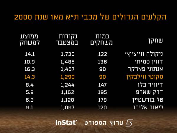 כדי לבחון את הנושא, הצבנו תנאי סף בסיסי: מינימום של 1,000 נקודות ביורוליג במדי מכבי ת״א, מאז שנת 2000. זו הסיבה ששחקנים בולטים כמו שאראס (711 נק׳), ג׳רמי פארגו (714 נק׳) גיא פניני (726 נק׳) יוגב אוחיון (807 נק׳), וסופוקליס שחורציאניטיס (901 נק׳) לא יופיעו בסקירה, שכוללת 8 שחקנים בלבד: ווילבקין, דיוויד בלו, טל בורשטיין, ליאור אליהו, ניקולה ווייצ׳יץ׳, דווין סמית׳, אנתוני פארקר ודרק שארפ.