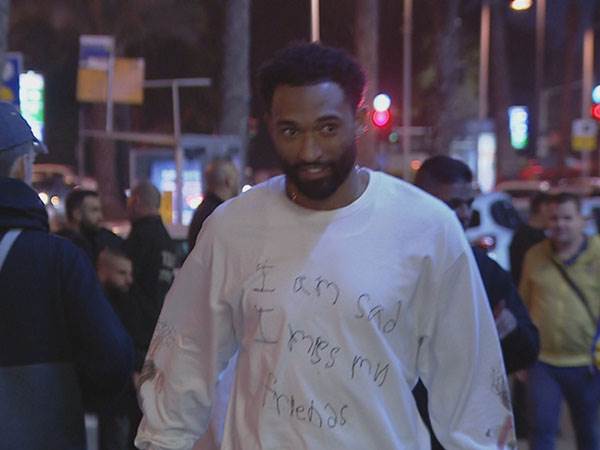 הפורוורד בן ה-29 הגיע הערב להיכל כשעל חולצתו רשומה הכתובת (בכתב יד): "אני עצוב ומתגעגע לחברים שלי". לא ברור למי ולמה כוון המסר הזה, אבל ברור שהוא מעיד על מצבו נכון לעכשיו - ולא ברור האם תהיינה השלכות גם על אפשרות שיתופו במשחק החשוב של הצהובים ביד אליהו.