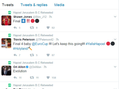 לא בכל יום קבוצה ישראלית ששמה לא מכבי תל אביב מעפילה לחצי גמר אירופי, אבל אמש (שישי), כנגד כל הסיכויים, הצליחה הפועל ירושלים לגבור 79:85 על גראן קנאריה החזקה בספרד ולהשלים סוויפ בסדרת רבע גמר היורוקאפ. גם ברשת לא נשארו אדישים להישג יוצא הדופן של החבורה האדומה, ששמה לעצמה מטרה להגיע רחוק באירופה וכרגע נמצאת מרחק ארבעה ניצחונות בלבד מהגביע וממקום ביורוליג בעונה הבאה.