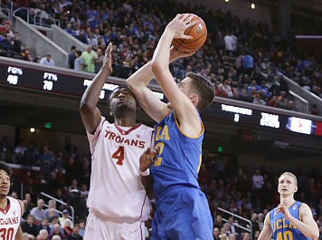 טי. ג'יי ליף רשם לפנות בוקר (בין רביעי לחמישי) שיא עונתי של 32 נקודות והוסיף 14 ריבאונדים ו-3 אסיסטים ב-79:95 של המדורגת 11 במכללות, UCLA, על וושינגטון סטייט.
