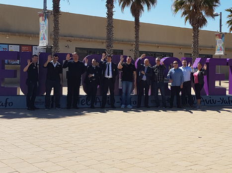 נציגי פיב"א והיריבות בנמל ת"א (צילום: איגוד הכדורסל)