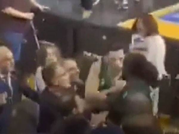פנאתינייקוס תהיה בסוף השבוע הקרוב בפיינל פור היורוליג ותשחק מול פנרבחצ`ה בחצי הגמר, אך סערה נוספת סביב הקבוצה התקיימה אמש (שבת) אחרי משחק הפלייאוף של הקבוצה מול פאוק סלוניקי.מתיאס לסור, סנטר הקבוצה, הבחין לאחר המשחק באוהד עם חולצה של פרטיזן בלגרד, קבוצתו הקודמת. הצרפתי עלה ליציע כדי לברך לשלום את האוהד, כשלפתע אותו אותו ירק בפניו של לסור. צפו במהומה בנגן הווידאו למעלה>>>הרוחות התלהטו מיד, לסור התקשה לשלוט בעצמו כשיואניס פאפאטרו ודינוס מיטוגלו הפרידו בין הצדדים ומנעו קטטה חמורה יותר. כזכור, לפני הסדרה מול מכבי תל אביב, תועד הסנטר כשהוא מתקוטט עם אוהד אולימפיאקוס. במשחק אגב, פנאתינייקוס גברה על פאוק סלוניקי 96:99 בהארכה ועלתה לחצי גמר הליגה היוונית אחרי 0:2 בסדרה. נאן הצטיין עם 25 נק׳, גראנט עם 19 נק׳, 8 אס׳ ו-7 ריב׳, לסור עם 15 נק׳, סלוקאס לא שיחק ועתאמן הורחק. קווין פורטר ג׳וניור עם טריפל דאבל מדהים מנגד של 23 נק׳, 14 ריב׳ ו-10 אס׳.