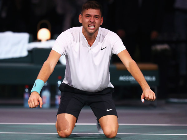 טורניר פריז מגיע לישורת האחרונה, הערב (שבת) עלו לגמר פיליפ קראינוביץ' וג'ק סוק, אחרי שניצחו את ג'ון איסנר וז'וליין בנטו.קראינוביץ', שעלה לחצי הגמר אחרי שרפאל נדאל פרש, גבר על איסנר בשעתיים ו-31 דקות 4:6, 7:6 (2), 6:7 (5). הסרבי ניצל שבירה כדי לעלות ל-2:4, אחרי שמוקדם יותר הציל 3 נקודות שבירה, ושמר על הברייק בדרך ל-0:1 במערכות.במערכה הבאה שני השחקנים שמרו על ההגשות וברוב המשחקונים ניצחו ללא קושי, עד כדי כך שלאורך כל הסט אף אחד מהם לא הגיע אפילו לנקודת שבירה. ההגשות של איסנר היו נהדרות, עם 78% בסרב הראשון, והוא פתח את שובר השוויון עם שני מיני ברייקים ועלה ל-0:5, לפני שסגר עניין וכפה מערכה מכרעת. המשחקון הראשון ארך 16 נקודות, לפני שקראינוביץ' שמר על ההגשות בסופו של דבר, אך משם המשחקונים הלכו והתקצרו, עד שהשניים הלכו לטיי ברייק נוסף. איסנר פתח אותו בצורה זהה ועלה ל-0:3, אבל הפעם נשבר בחזרה וקראינוביץ' עלה ל-5:6, לפני שמיני ברייק נוסף של הענק האמריקני עלה לו בהפסד. 😱 STUNNING 😱 Qualifier Filip #Krajinovic reaches Paris Bercy final beating the runner-up John Isner 6-4 6-7 7-6!! #ParisMasters pic.twitter.com/PlBGEDdWLG— We Are Tennis (@WeAreTennis) November 4, 2017 חצי הגמר השני היה הרבה פחות מותח. סוק אמנם איבד יתרון שבירה פעמיים, אבל בפעם השלישית ניצל את ההזדמנות וסגר עניין עם 5:7. משחק ההחזרה של בנטו צנח במערכה השנייה, כשלא הצליח לזכות אפילו בנקודה אחת בהגשות של סוק.שבירה ראשונה סידרה לסוק יתרון 2:4, לאחריה הוא שבר מיד בשנית ומזה בנטו כבר לא היה יכול לחזור. 2:6 בסט השני לאמריקני, בדרך לגמר. .@JackSock will play in his 1st ATP Masters 1000 final tomorrow after defeating Benneteau 7-5, 6-2 at the @RolexPMasters!#USOpen pic.twitter.com/RKkeryoLRf— US Open Tennis (@usopen) November 4, 2017