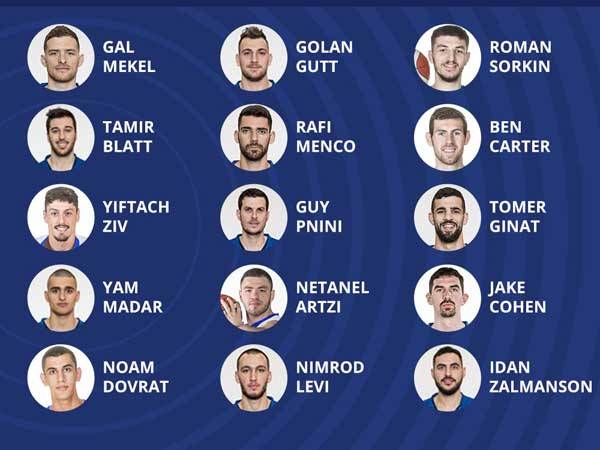 הסגל המלא: גל מקל (מלאגה), תמיר בלאט (הפועל ירושלים), יפתח זיו (הפועל גלבוע/גליל), ים מדר (הפועל תל אביב), נועם דוברת (מכבי ראשון לציון), גולן גוט (מכבי ראשון לציון), רפי מנקו (שאלון), גיא פניני (הפועל חולון), נתנאל ארצי (הפועל גלבוע/גליל), נמרוד לוי (עירוני נס ציונה), רומן סורקין (מכבי חיפה), בן קרטר (הפועל אילת), תומר גינת (לבלואה), ג'ייק כהן (אוברדוירו), עידן זלמנסון (הפועל ירושלים).