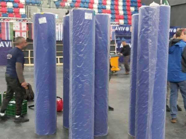 עשרות עובדים עומלים על הקמת האולם מתחילת השבוע. מאולם כדורסל יהפוך ההיכל לאולם ג'ודו מפואר עם שלושה מזרנים. דגלי המדינות כבר באולם, השילוט מוכן כשבהמשך היום יפרסו את המשטח והמזרנים.