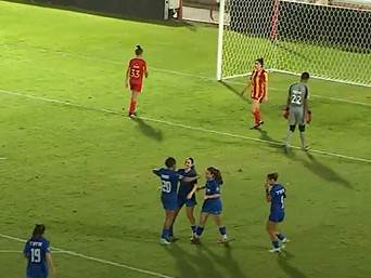 גם סגנית האלופה עדיין במאזן מושלם, וזאת בסיומו של משחק שנפתח לאחר כחצי שעה של עיכוב, מכיוון שהמארחת לא הגיעה לשריקת הפתיחה עם רופא. על הדשא, החניכות של צח שמרוני שוב הרשימו, עם שערים של שירה אלינב, דוריס באודווה וסמדר כהן, כשגם קשרית הרכש קרול קרדוזו הבריזלאית, עלתה מהספסל להופעת בכורה.