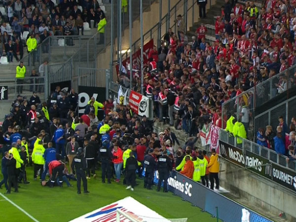 המשחק בין אמיין לליל הופסק הערב (שבת) כבר בדקה ה-15 לאחר שהיציע שמאכלס את אוהדי הקבוצה האורחת קרס. הדבר קרה אחרי שהובקע שער היתרון של ליל, אותו כבש פודה באלו. המגן השמאלי הצעיר רץ לחגוג עם אוהדיו, אך באותו הרגע המחסום קרס והקהל נפל באופן פתאומי לתחומי המגרש.