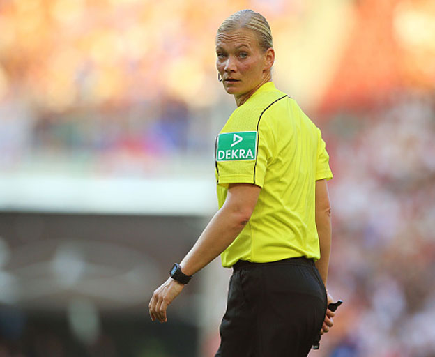 שטיינהאוס בת ה-38, שוטרת במקצועה, שפטה בעבר בגביע העולם לנשים ב-2011 וב-2015 וכן במשחקים האולימפים בלונדון. בשנה האחרונה היא שפטה משחקים בבונדסליגה השניה לגברים. אגב, היא גם זוגתו לחיים של השופט האנגלי לשעבר, הווארד ווב.