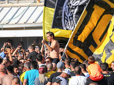 בית"ר ירושלים התייצבה הערב (ראשון) לאימון הרשמי הראשון שלה שלה לעונת 2017/2018. כ-3600 אוהדים צעדו ממרכז בית הכרם כבר כשלוש שעות לפני תחילת האימון והגיעו יחד לבית וגן. מתוך ציפייה שיהיה קושי לקיים אימון והשערים ייפתחו לקהל הרחב, השחקנים התבקשו להגיע לאימון כוח קודם לכן בתוך המתחם. אוהדי בית"ר ירושלים צבעו את בית וגן בצהוב-שחור עם צעיפים ודגלים, וגם הדליקו רימוני עשן. יוסי בניון הונף על כתפי האוהדים וזכה לעידוד מאסיבי ולשירה אדירה. אקס בני סכנין, ז'אורז'יניו, התרגל לבית החדש ונופף בדגלי בית"ר ירושלים. לאחר חצי שעה של טירוף על כר הדשא, האוהדים נרגעו ואיפשרו לקבוצה לפתוח את האימון. בצוות המקצועי יקבלו החלטה עד מחר אם להחתים חלוץ או בלם זר. הבעלים אלי טביב ונציגו אלי אוחנה טוענים כי הדבר החשוב ביותר כרגע הוא חלוץ, נוכח העובדה שאיתי שכטר לא יוכל להחזיק כל העונה לבדו ואנתוני וארן הגיע כמחליף לחלוץ השני.בקבוצה ציינו כי שני חלוצים שהיו על הפרק לא הסכימו להצעות הכספיות ועדיין מחכים להצעות מליגות בכירות יותר. "חסר לנו חלוץ. מאוד קשה להביא שחקנים לארץ. עובדה שכל הקבוצות מחפשות חלוצים ואף אחת לא סוגרת", אמרו בבירה.עידן ורד עבר היום צילום לבדיקת מצב הקרסול שלו, בו התגלה כי הוא סובל מבצקות ולא יהיה כשיר למשחק מול ואשאש ביום חמישי.הבשורות הטובות מגיעות מכיוונם של דן מורי וז'אורז'יניו. השניים סבלו מכאבים וסיפרו כי חלה הטבה משמעותית. החל ממחר יחל מימר להקרין לשחקנים קטעי וידאו על היריבה ההונגרית שניצחה את בית"ר במחנה האימונים.