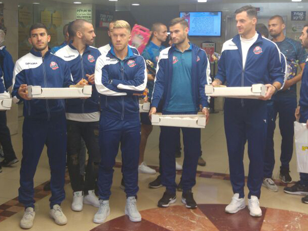 שחקני הפועל חיפה בביקור בביה"ח (צילום: האתר הרשמי)