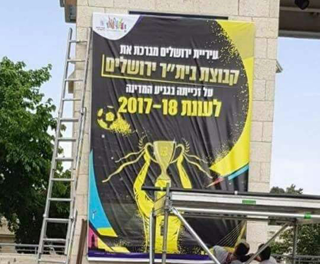 בעיריית ירושלים כבר בטוחים שהם יודעים מי תזכה בגביע המדינה והציבו שלט בהתאם: