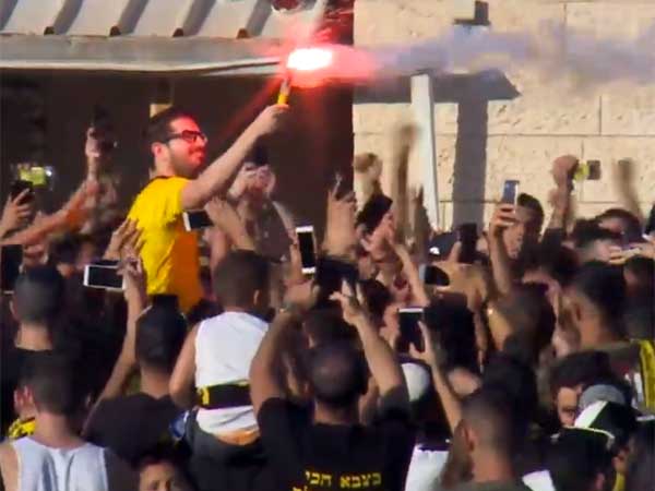 בינתיים, כ-3,000 אוהדי בית"ר ירושלים הגיעו לאימון הקבוצה ודירבנו את השחקנים. משה חוגג זכה לעידוד מאסיבי מהקהל הצהוב שקילל במקביל את אלי טביב והדליק אבוקות. גם הבעלים עצמו נתפס כשהוא מחזיק אבוקה בידו.